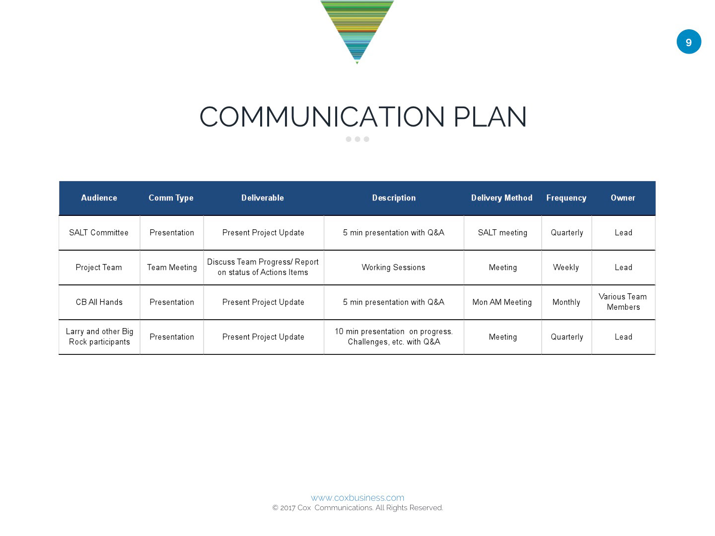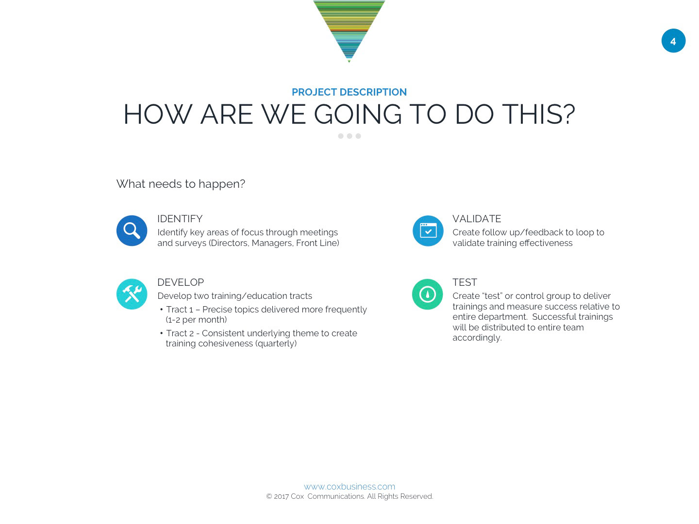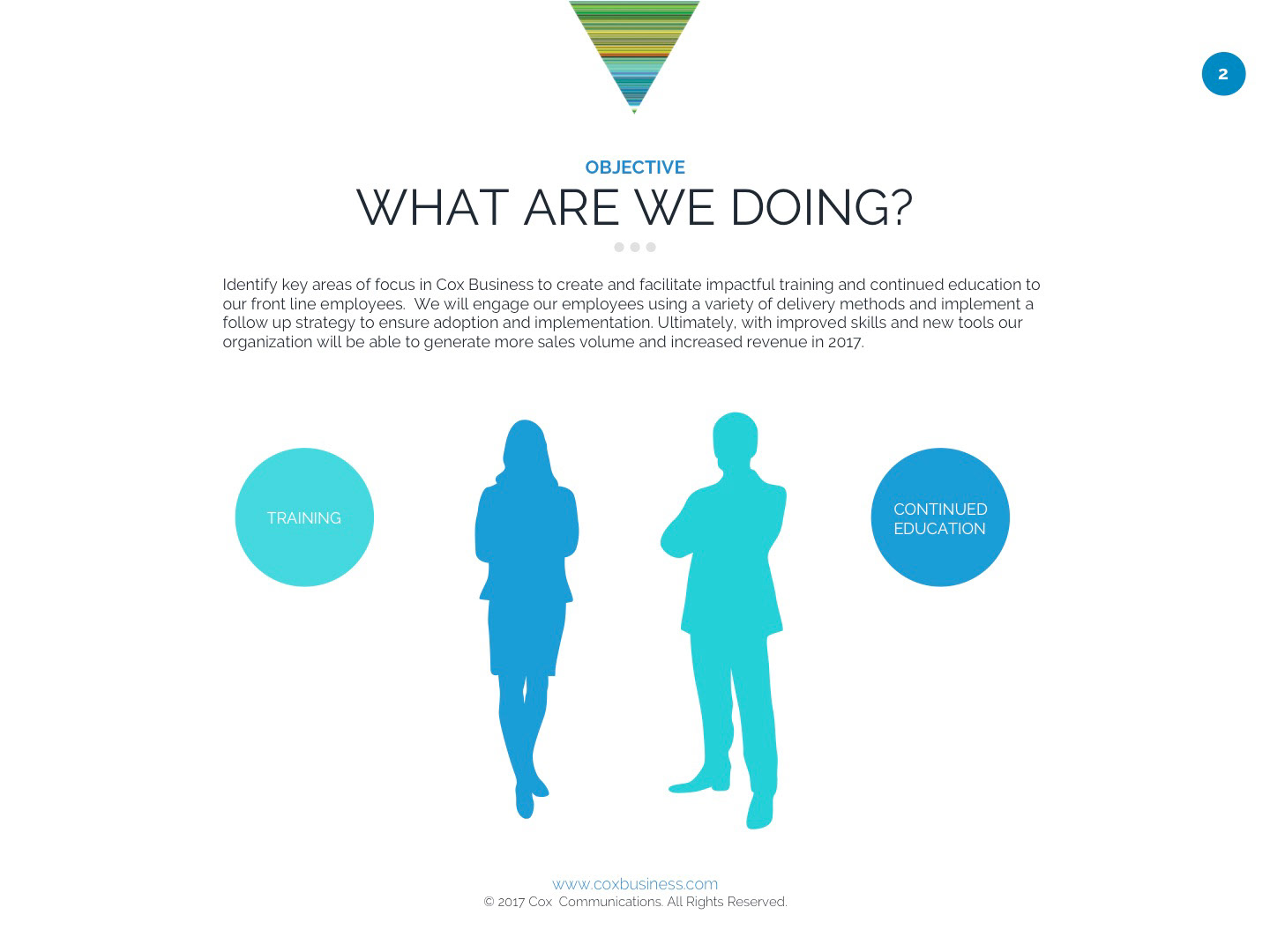 A long-time client, Cox Business had needs for many internal presentations over the years. The initial design was created in Adobe Illustrator, then recreated in PowerPoint so the client could make edits as needed.